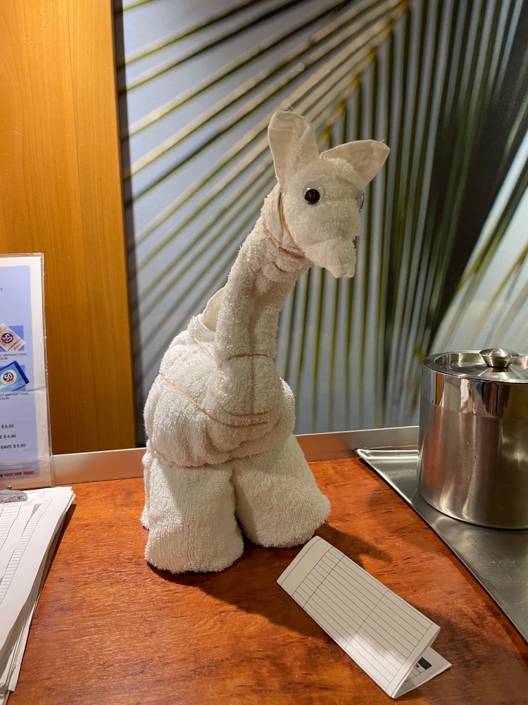 Here are a few photos I enjoy. I’m keeping most to myself, but the water was so peaceful and who doesn’t love a good towel art animal.
